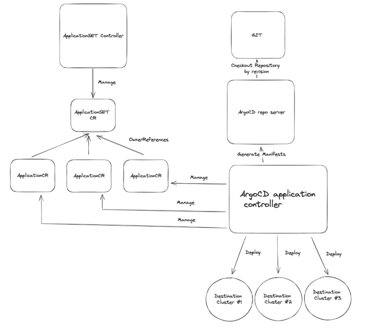 - ApplicationSet Controller는 개별 애플리케이션 생성과 Owner Reference 연계 역할을 하며, 실제 배포 작업은 하지 않습니다.