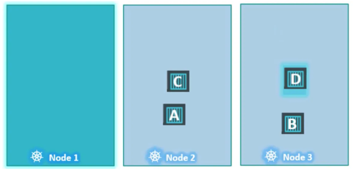 결과적으로 파드 A, B, C는 노드1에 배치되지 않지만 파드 D는 노드1에 배치됩니다.