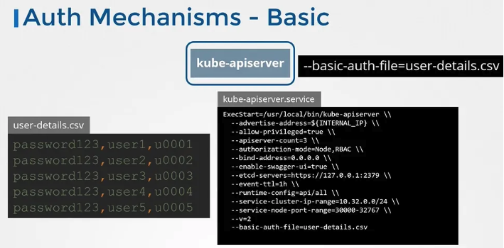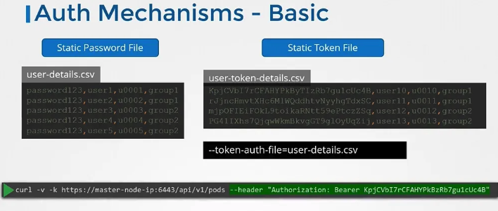 - 정적 토큰 파일: 사용자 이름과 토큰 목록을 포함한 파일을 사용하여 인증합니다.