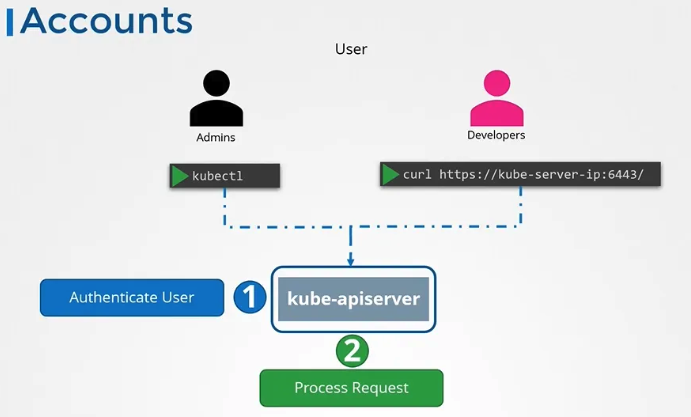 - Kubernetes 클러스터 내에서 모든 사용자와 애플리케이션의 액세스 요청은 Kube API 서버를 거칩니다. API 서버는 사용자의 요청을 처리하기 전에 인증을 수행합니다. 따라서 클러스터에 대한 모든 요청은 먼저 API 서버에 의해 인증됩니다.